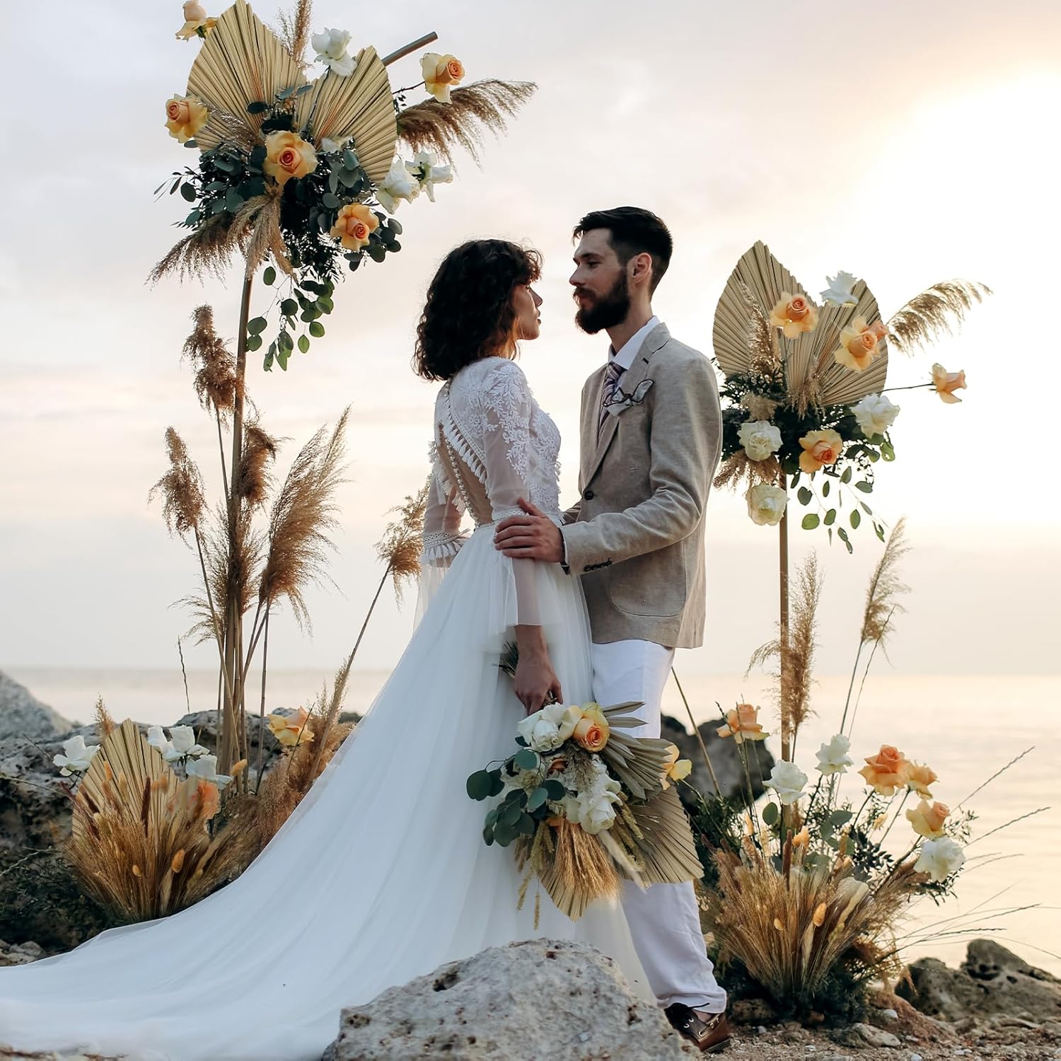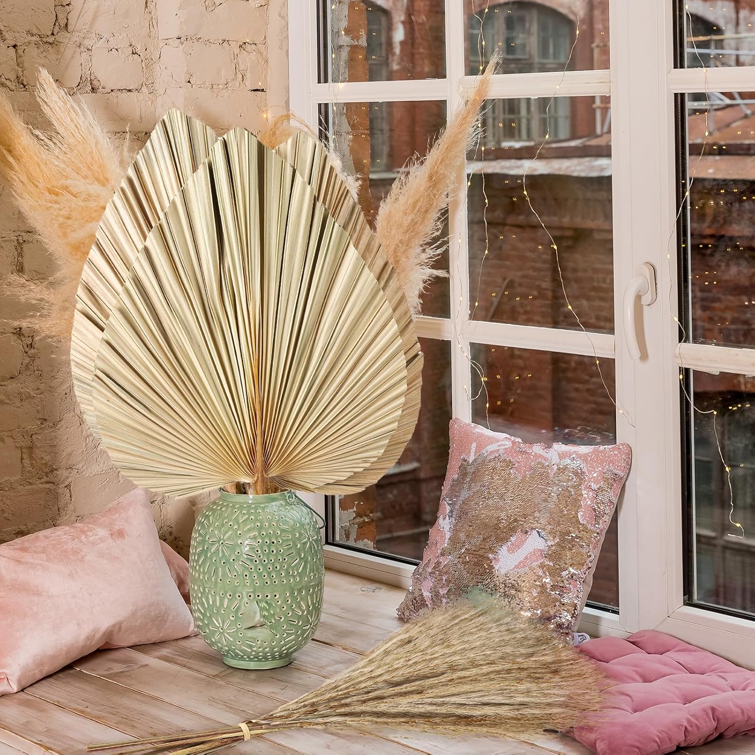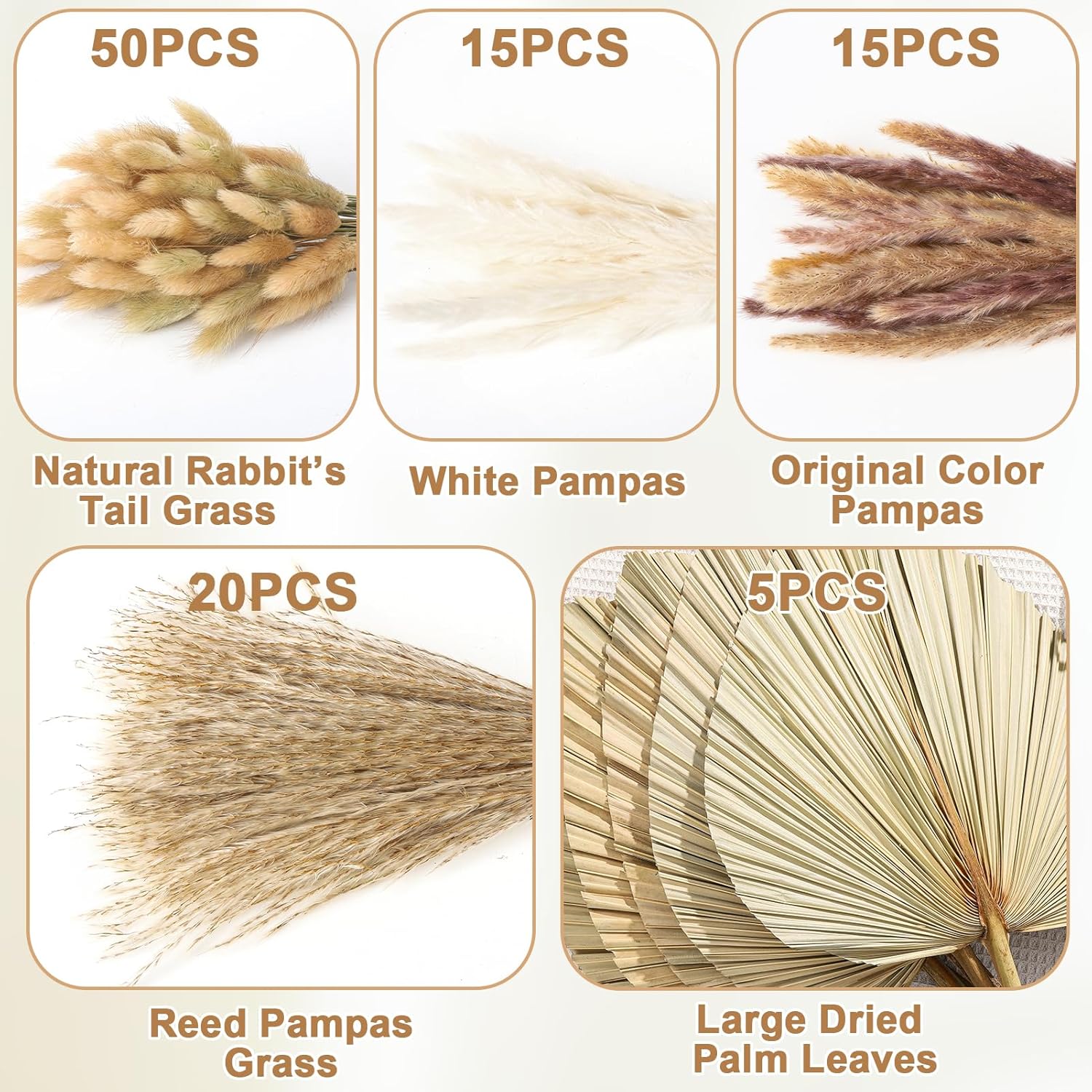105 Pcs Boho Dried Pampas Grass Decor Bulk, Large Dried Palm Spears Bunny Tails Pampas Reed Grass Dried Palm Leaves Dried Flower Bouquet Boho Centerpieces for Wedding Home Tables Decor