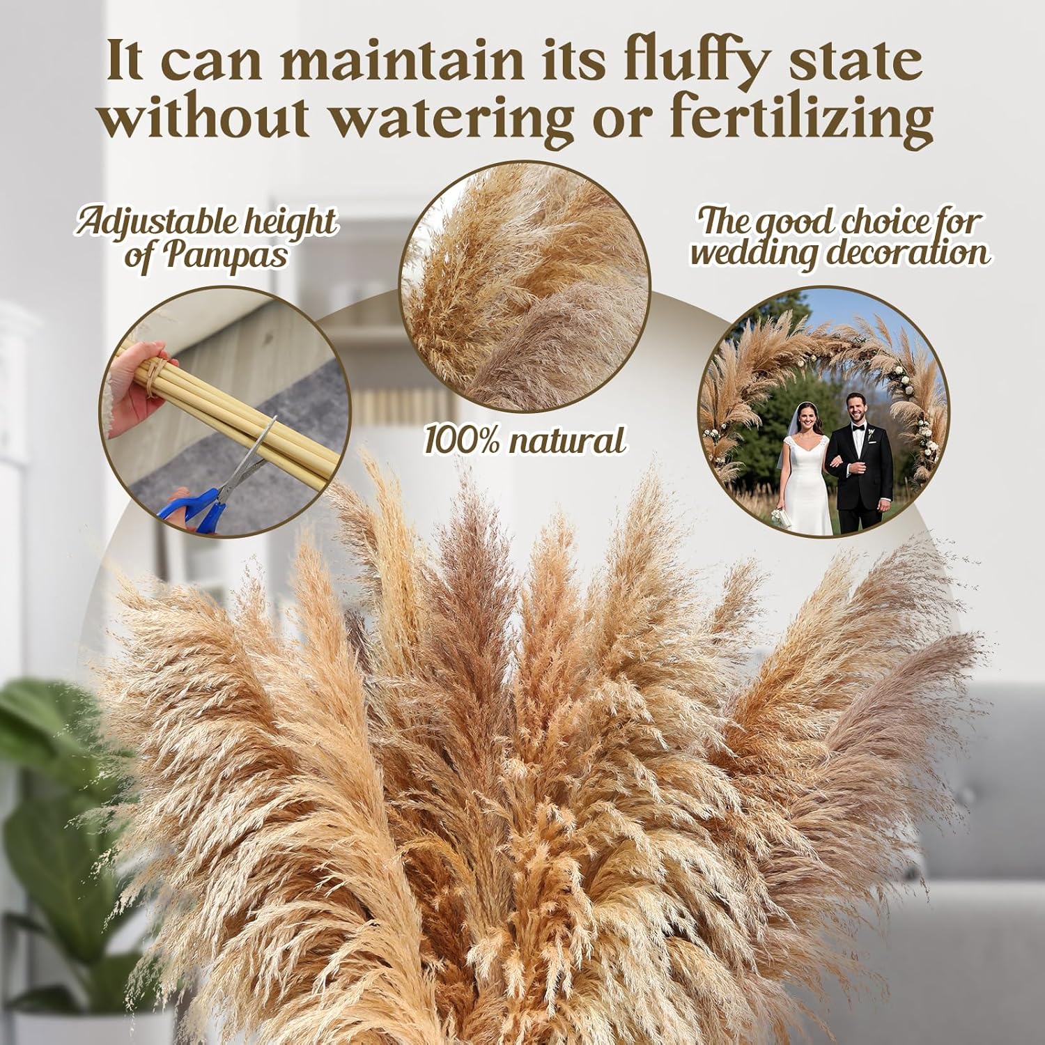 46inch 12pcs Dried Pampas Grass Decor Tall-Large Brown Pompas Grass Floral-Natural Tall Fluffy Pampas Grass Flower for Floor Vase,Wedding,Party,Living Room Floor,Boho Home Decor