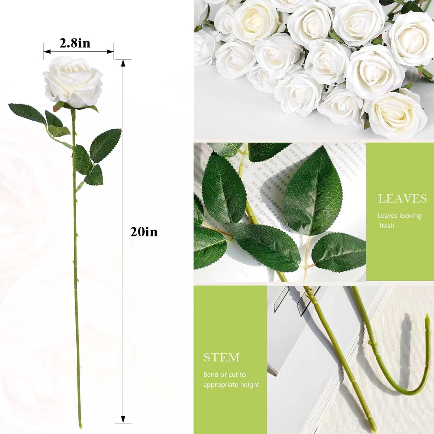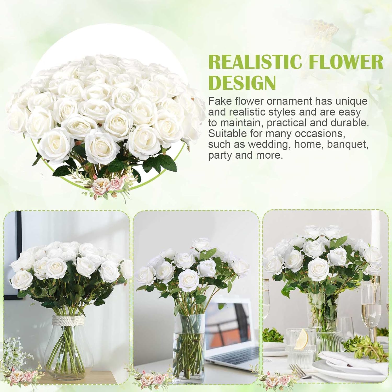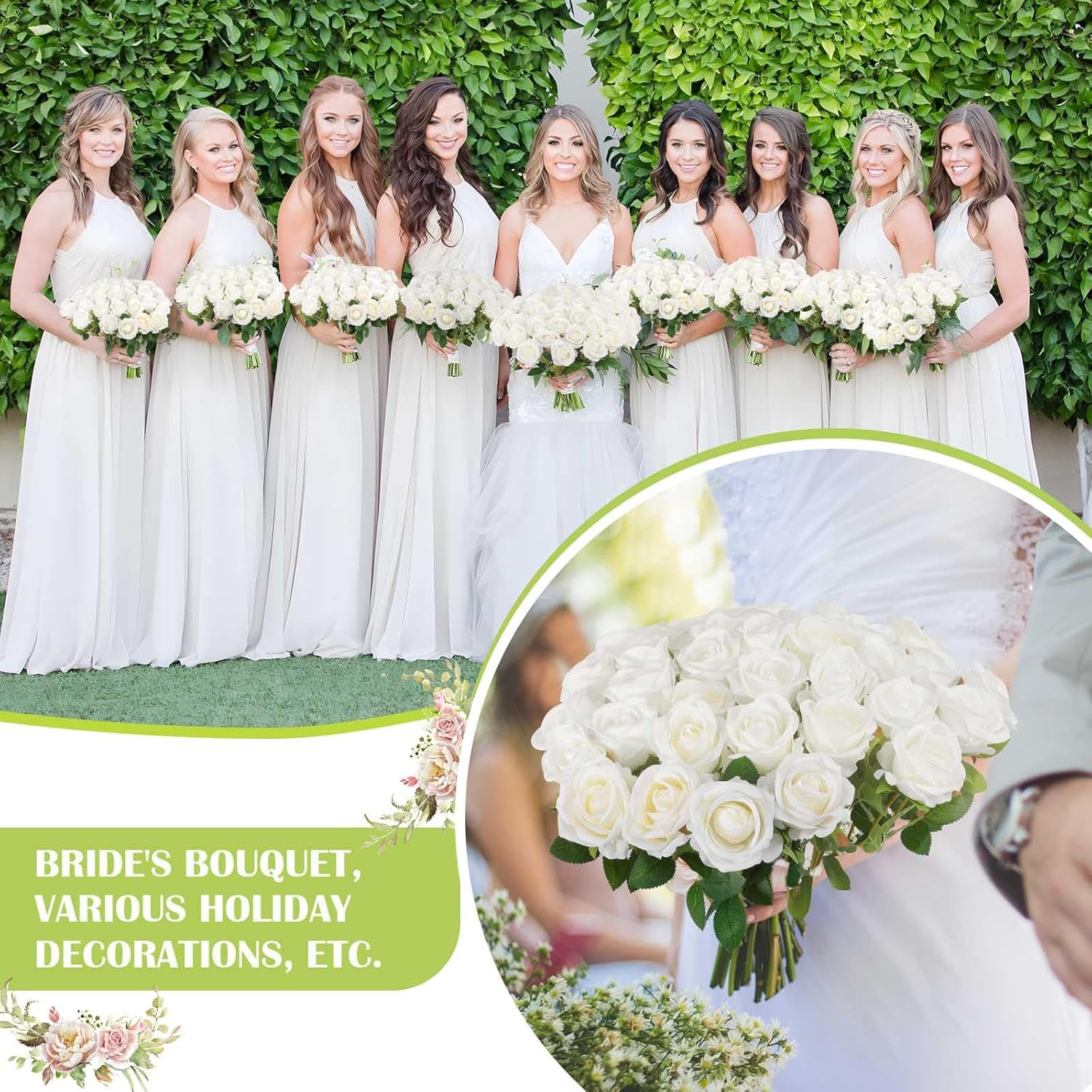 60 Pcs Artificial Roses Bulk Velvet Silk White Roses White Roses for Wedding Centerpieces Bridal Bouquet Mohter's Day Valentine's Day Home Decor (60, White)