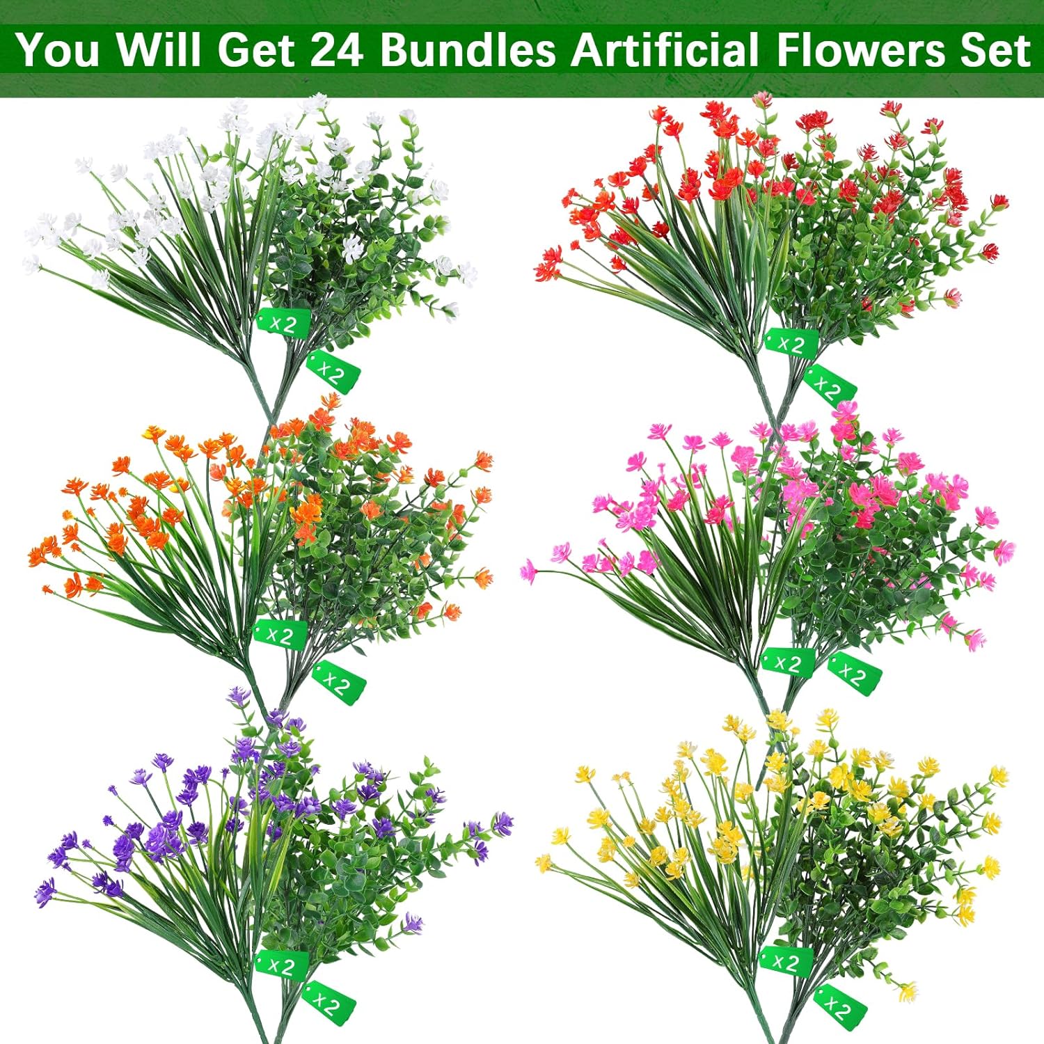 AGIRL 24 Bundles Artificial Flowers Outdoor,No Fade Fake Plastic Flowers Faux Plants for Decoration Hanging Planters Indoor Outside Garden Porch Window Box Home Farmhouse Wedding