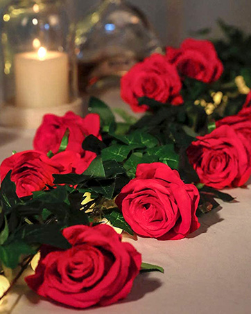 Our fake roses are made of high-quality velvet. These gorgeous artificial roses are perfect for weddings, Valentine's Day setups, Mother's Day, proposal parties, wedding celebrations, engagements, bridal bouquets, boutonnieres, table centerpieces, garden accents.