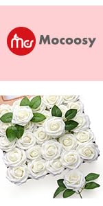 Mocoosy 50Pcs Rose Artificial Flowers, Cream White Fake Roses for Decorations, Real Touch Beige Foam Rose Bulk with Stems DIY Wedding Bouquets Floral Arrangements Bridal Shower Party Home Table Decor